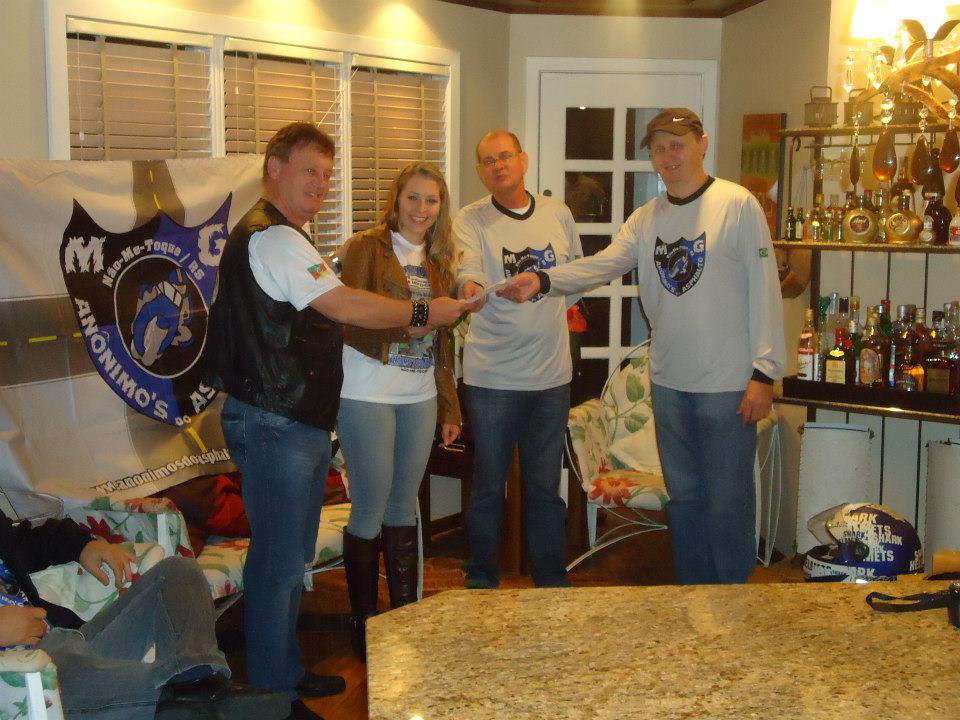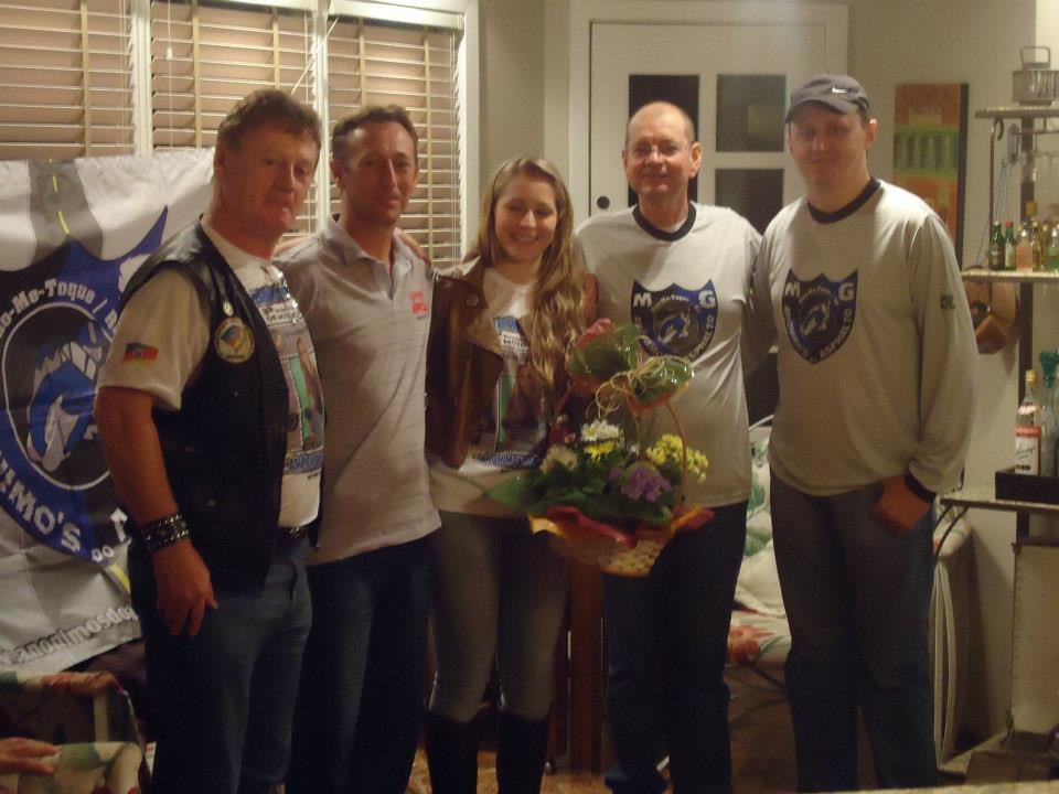 ALGUNS MOTOCICLISTAS DE NÃO-ME-TOQUE, REPRESENTANDO O MOTO GRUPO ANÔNIMO'S DO ASPHALTO E A AREMO/RS ASSOCIAÇÃO REGIONAL DE MOTOCICLISMO DO RS, HOMENAGEARAM A MOTOCICLISTA E RAINHA DO MOTOCICLISMO DO RS 2012/2013, SRTA. IZARORA ECKET, A QUAL ENCERRA SEU REINADO NO DIA 21-04-2013, BEM COMO AO COORDENADOR DA COMISSÃO DELIBERATIVA ...DO MOTO GRUPO ANÔNIMO'S DO ASPHALTO QUE, ALÉM DA PRESENÇA DOS AMIGOS MOTOCICLISTAS, RECEBEU UM MIMO DA ASSOCIAÇÃO.